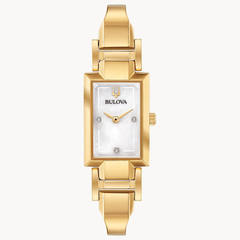 Form and function, no compromise needed. Gold-tone stainless steel case with a uni-directional rotating bezel. Black wave inspired dial texture with luminous hands and markers. Six-hand chronograph movement. Gold-tone stainless steel bracelet with short fold-over closure. Water resistant to 100 meters.
