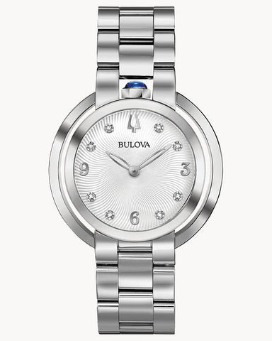 Legendary heritage reinvented in rose gold-tone stainless steel case with synthetic blue spinel cabochon crown at 12 o’clock position and 141 pink sapphires individually hand set on case, case parenthesis and lugs. Textured silver-white dial, double curved sapphire crystal, rose gold-tone stainless steel bracelet with double-press deployant closure, and iconic dye struck “Goddess of Time” dimensional case back.