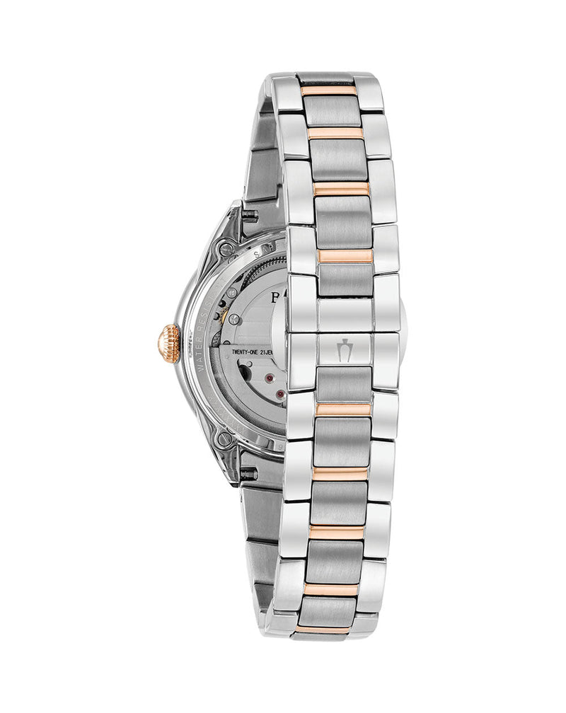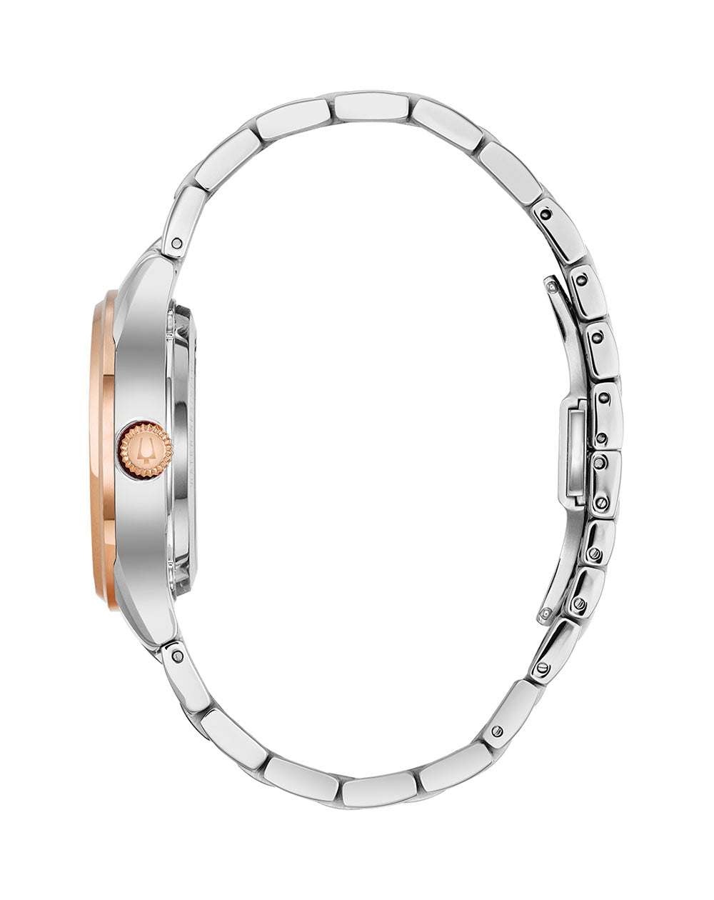 From the Marine Star Collection. New Marine Star in stainless steel case with 29 diamonds individually hand set on silver-tone accented bezel and dial, midnight blue mother-of-pearl inner dial, sapphire glass, screw-back case, stainless steel bracelet with double-press deployment closure, and water resistance to 100 meters.