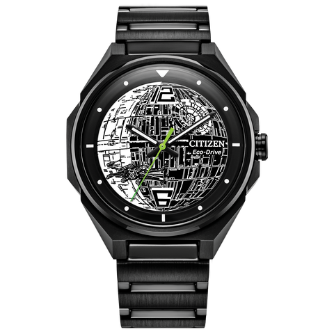 That’s no moon, that’s a space station!” This imposing watch from the men’s classic Star Wars™ | Citizen collection, the Death Star 2, features the intimidating Death Star on a black and white two-tone accented dial. This new timepiece has 3 hands that appear as lightsabers™ accentuating with a glow of destiny. The luminous face highlights the X-wing fighter, and...
