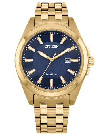 Make a distinctive style statement. Featuring a gold-tone stainless steel case and a blue 3-hand dial encased in sapphire crystal, this men’s timepiece is a combination of functional simplicity with a touch of elegance. The gold-tone stainless-steel bracelet has a fold over clasp with push buttons, giving the watch an understated refinement. Water resistant to 100 meters and sustainably powered...