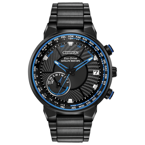 Bolder and brighter. Enhanced technical and architectural design; the new Citizen Satellite Wave GPS Freedom is the leader of the pack with the world's fastest timekeeping signal reception speed from GPS navigation. A sleek black ion-plated stainless steel case and bracelet, black dial and brilliant blue accents featured satellite GPS timekeeping technology with worldwide reception and time adjustment in 40...