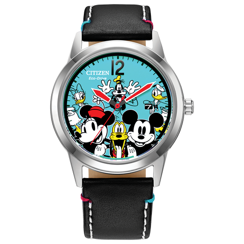 Citizen’s Disney Sensational Six timepiece features some of Disney’s most recognized characters: Mickey Mouse, Minnie Mouse, Donald Duck, Daisy Duck, Goofy and Pluto. The unisex watch features exclusive artwork that captures the essence of their fun-loving personalities. The Disney watch features a black leather band with contrast stitching to match the dial and is sustainably powered by light with Citizen’s...