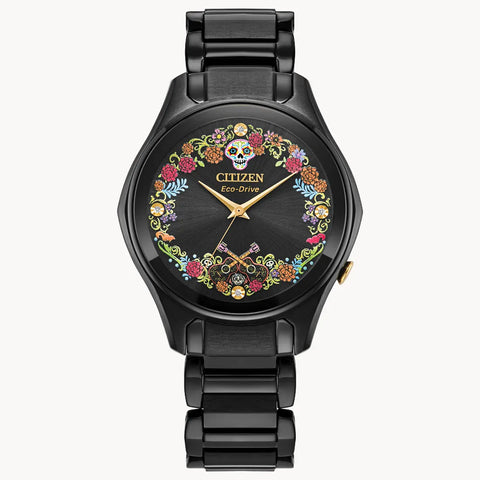 “Coco,” the beloved Disney and Pixar film, is a celebration of Mexican culture that reminds us of the power of family connection and the importance of pursuing your dreams. The new Disney | Citizen Sugar Skull timepiece beautifully expresses these themes on the art-filled black dial set with crystals and gold-tone hands. The dial’s lush border is filled with symbolic...