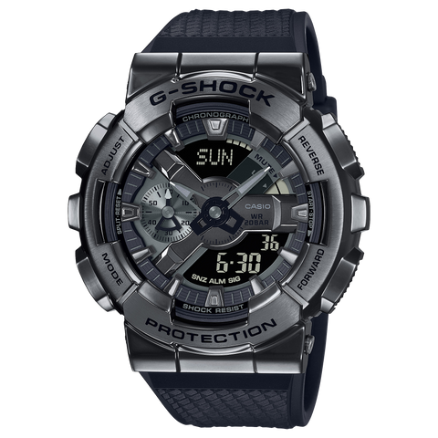 Go metal-clad in all black with a G-SHOCK that says strong, steely, and stylish. The metal bezel, finished in black ion plating, makes a chic, stylish statement about your design sense. Opt for the GM2100 with the popular octagonal bezel or the GM110 with its oversized round case. Either way, you get an all-black fashion statement with a luxury feel...