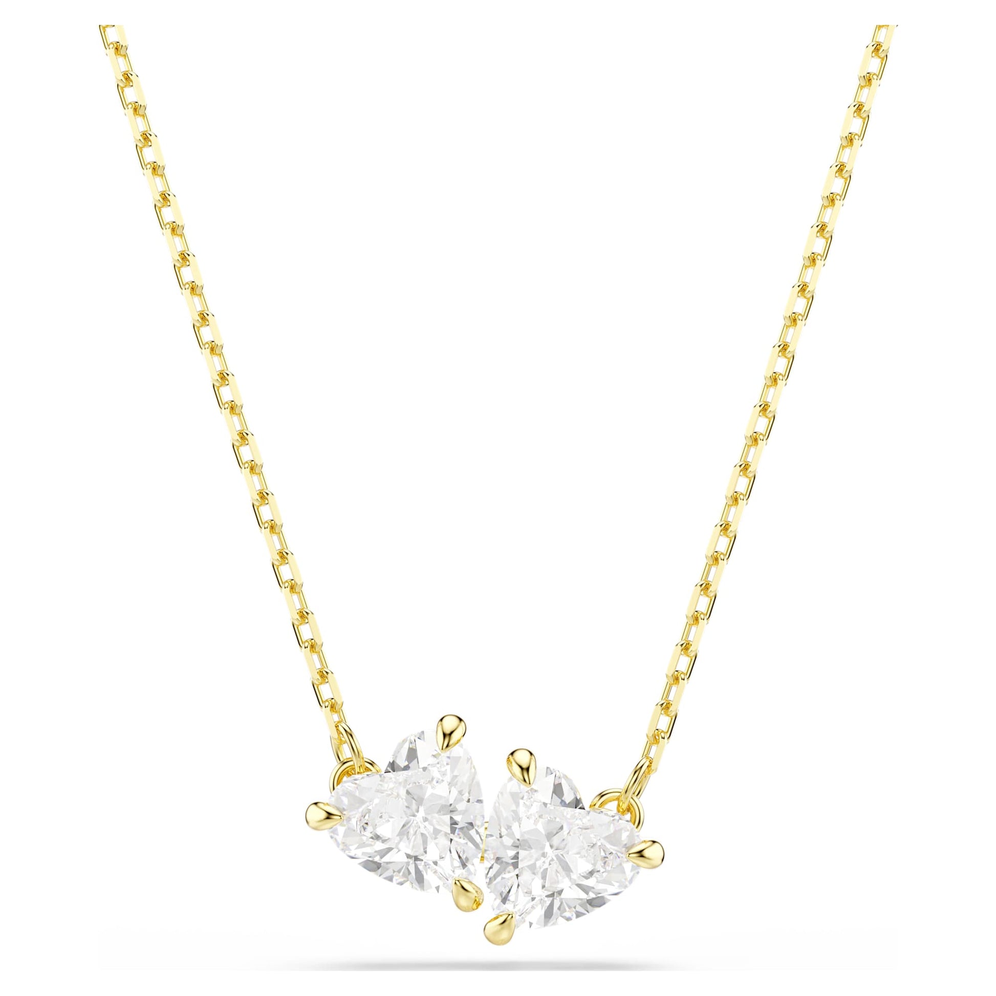 This Swarovski necklace from the Mesmera family delivers classic design with a modern twist. Featuring beautiful Swarovski Zirconia shaped like twin hearts, the design is complemented by gold-tone plating and the understated elegance of its chain. This charming necklace is the perfect gift of romance for someone you love.