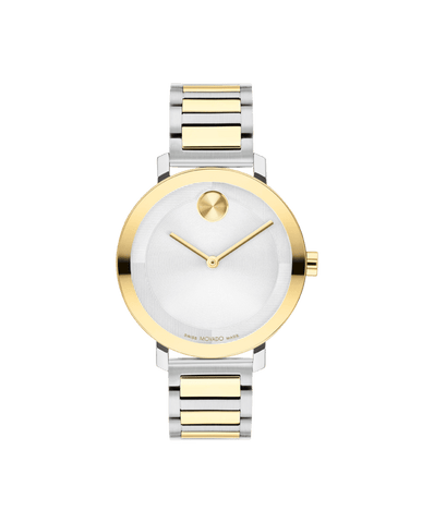 The evolution of modern design with a sharp look and elevated feel. This mix-metal timepiece is crafted from stainless steel and pale yellow goldtone ion-plated stainless steel. It features a statement-making 34mm case that houses a captivating micro-textured silvertone dial with a glossy lacquer overlay, slim goldtone hands, and our iconic dot motif at 12 o’clock.