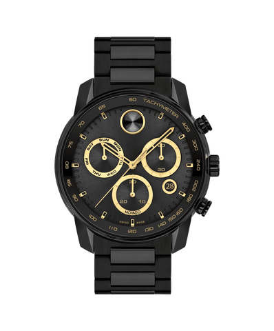 The sporty, eternally stylish chronograph gets fresh feel with strong, contemporary design that combines modern minimalism and a Bold edge. The classic bracelet and statement-making 44mm case are cast in rich black ion-plated stainless steel for a flawlessly refined finish.