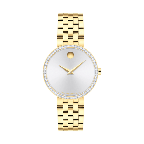 The Museum Classic is the purest interpretation of Movado's Museum Dial—an icon of modern design seen in art institutions around the world. This 29.5mm watch features a silver white sunray dial, dauphine hands, lab-grown diamond pavé bezel, and our signature dot at 12 o'clock.