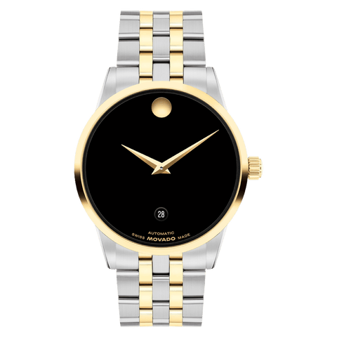 The Museum Classic is the purest interpretation of Movado's Museum Dial—an icon of modern design seen in art institutions around the world. A Swiss made self-winding movement drives this watch, powered by the motion of your wrist. This 40mm two-hand watch features a black lacquer dial, yellow gold tone dauphine hands, and our signature dot at 12 o'clock
