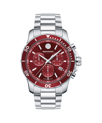 The Series 800 is a modern take on a timeless sport-inspired silhouette. This 42mm chronograph watch features a deep red sunray dial, aluminum bezel, and Swiss Super-LumiNova® accents.