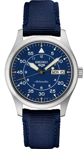 Seiko 5 Sports Collection. Inspired by the vintage designs worn by early pilots, this updated classic offers genuine style with both durability and all-day versatility. Providing automatic technology that you control with every movement, this distinctive watch is powered by a 24-jewel movement that beats at a frequency of 21,600 vibrations per hour, with a power reserve of approximately 41...