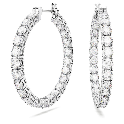 Matrix hoop earrings Round cut, White, Rhodium plated 5647715