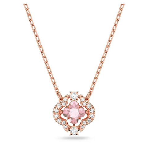 This Una necklace sparkles with a charming floral design. From our much-loved Sparkling Dance collection, it features a pink dancing stone in the shape of a clover, which appears to float inside its setting and is complemented by the rose-gold tone plated chain. This piece of jewelry will pair well with casual outfits and is a great gift for a...