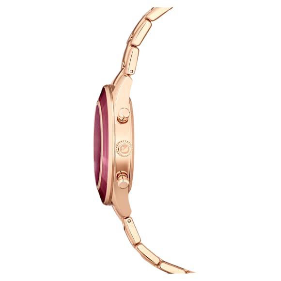 A modern take on a luxurious chronograph, the Octea Lux Sport 37mm infuses meticulous craftsmanship with creative artistry. It features a rich burgundy sunray dial with crystal index markers and three dial counters, and a tonal crystal bezel for added brilliance. A chic three-link bracelet completes this extraordinary design. The watch is water resistant to 50m. Swiss Made.