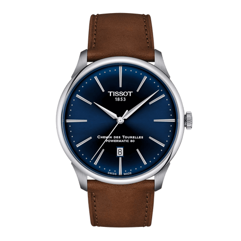 Close your eyes and think of a pure Swiss watch and you’ll see the Chemin des Tourelles. Named after the street that leads to Tissot's home in the Swiss mountains, it’s Tissot’s icon: round, classic, mechanical, ageless. Now updated and refined, this edition has a gently domed sapphire crystal that sits over a soft-sunray dial with simple, elegant baton hour...