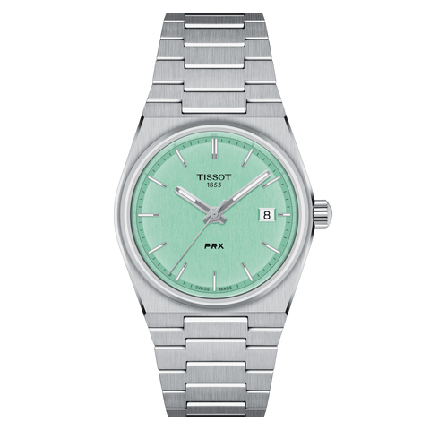 Tissot PRX 35mm Powermatic 80, where timeless aesthetics meet contemporary technology. This 35mm watch exhibits a high-quality steel case and a vibrant ice blue dial. This trendy shade casts an exquisite hue, perfectly catching and reflecting light. The distinctive waffle dial pattern adds a unique sophistication to this automatic model. Equipped with water resistance up to 100 meters and a...