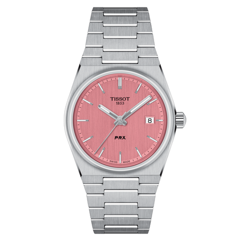 The Tissot PRX T137.210.11.331.00 is a model suitable for both ladies and gentlemen. A Swiss Made quartz movement is responsible for its operation, along with an EOL battery depletion indicator. Preserved in silver color scheme, it is a perfect combination together with the pink dial enriched with analog hour markers. At the 3 o'clock position, there is a day-of-the-month date...