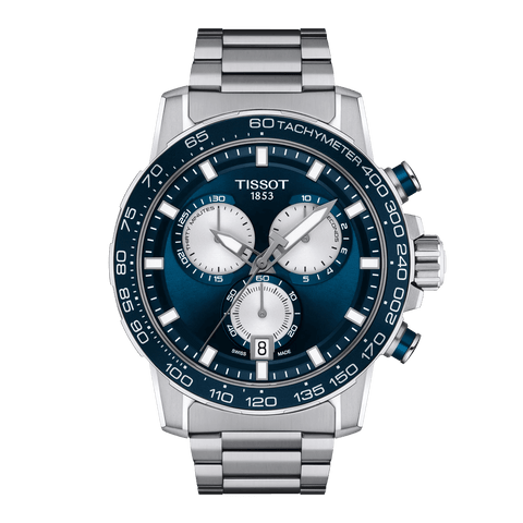The Tissot Supersport Chrono is the quinessence of modern sportiness with its large dial and chronograph display. The Supersport collection comes in a variety of colors and finishes; there's a choice for everyone.