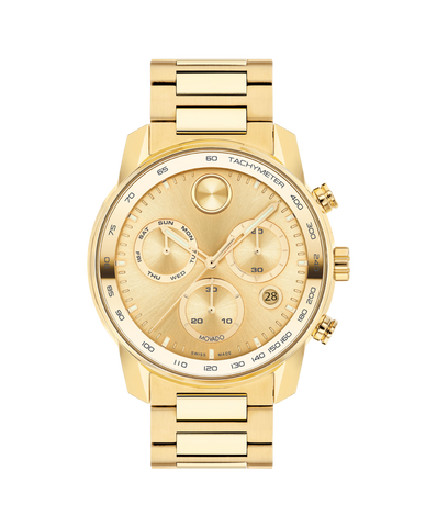The sporty, eternally stylish chronograph gets a fresh feel with strong, contemporary design that combines modern minimalism and a Bold edge. The classic bracelet and statement-making 44mm case are cast in gleaming yellow gold ion-plated stainless steel for a flawlessly refined finish.