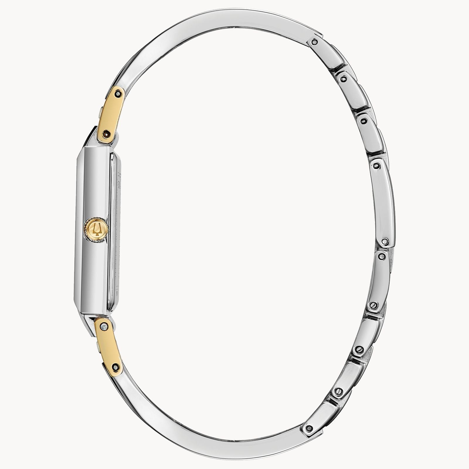 The Joseph Bulova Collection pays homage to the brand’s visionary founder. Gold-tone stainless steel case with an ivory dial and applied markers. Open case back showcasing the fine Swiss made 26-jewel automatic movement, featuring the Joseph Bulova signature, “1875” and “Swiss Made”, and a custom-designed rotor. Brown leather alligator grain strap with the “Joseph Bulova” signature on the interior lining...