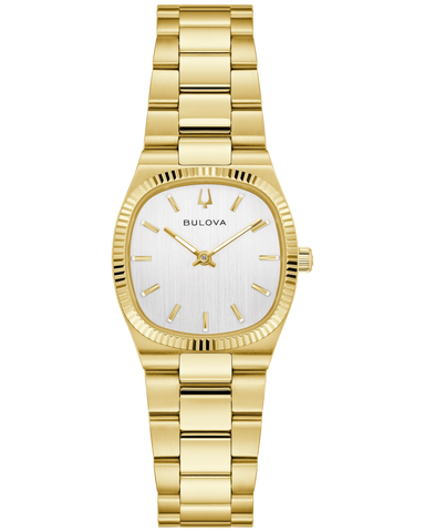 Drawing inspiration from the incredible Bulova Super Seville of the 1970s, the Super Seville Mini delivers classic aesthetics for timeless appeal. With versatility for every wardrobe, the 25mm gold-tone stainless steel case impresses with a seamless silhouette transitioning into the matching integrated 3-link stainless steel bracelet, which features a push-button deployant clasp. An elegant, grooved coin edge bezel enhances the...