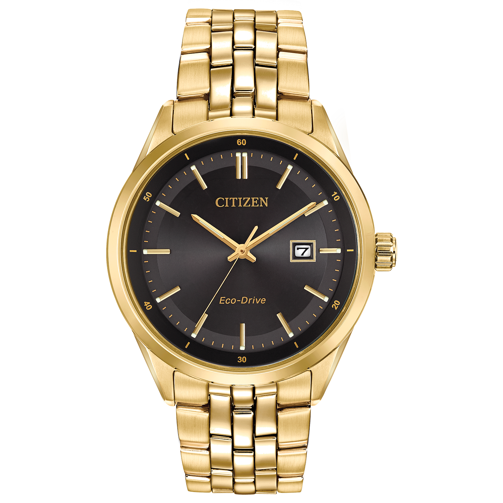 A time-honored watch with clean lines and simple accents, this watch will never go out of style. Featured here in gold-tone stainless steel with black dial, gold-tone accents, sapphire crystal and date. Featuring our Eco-Drive technology – powered by light, any light. Never needs a battery. Caliber number E111.