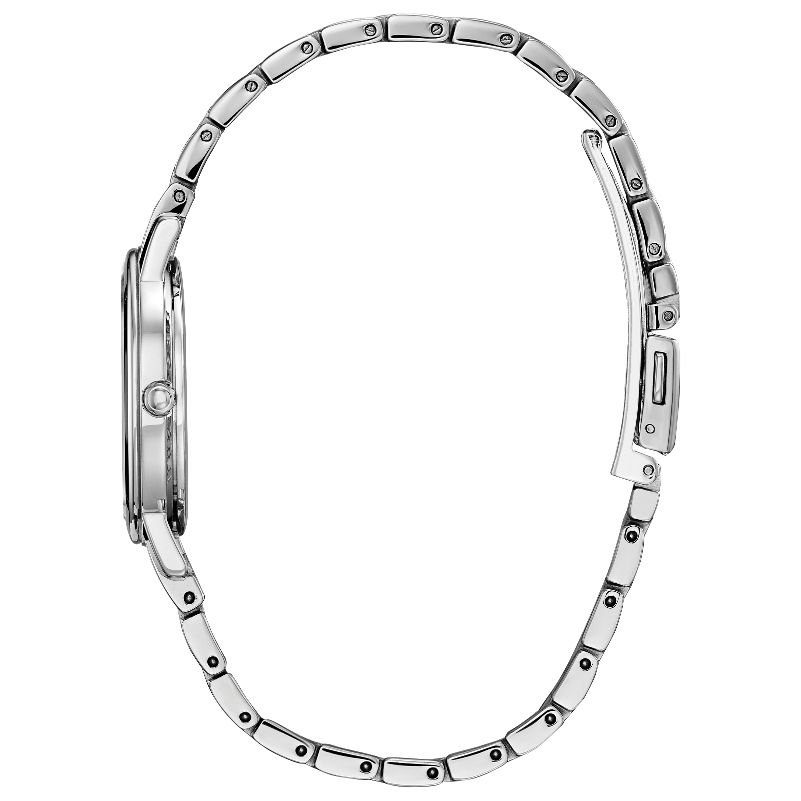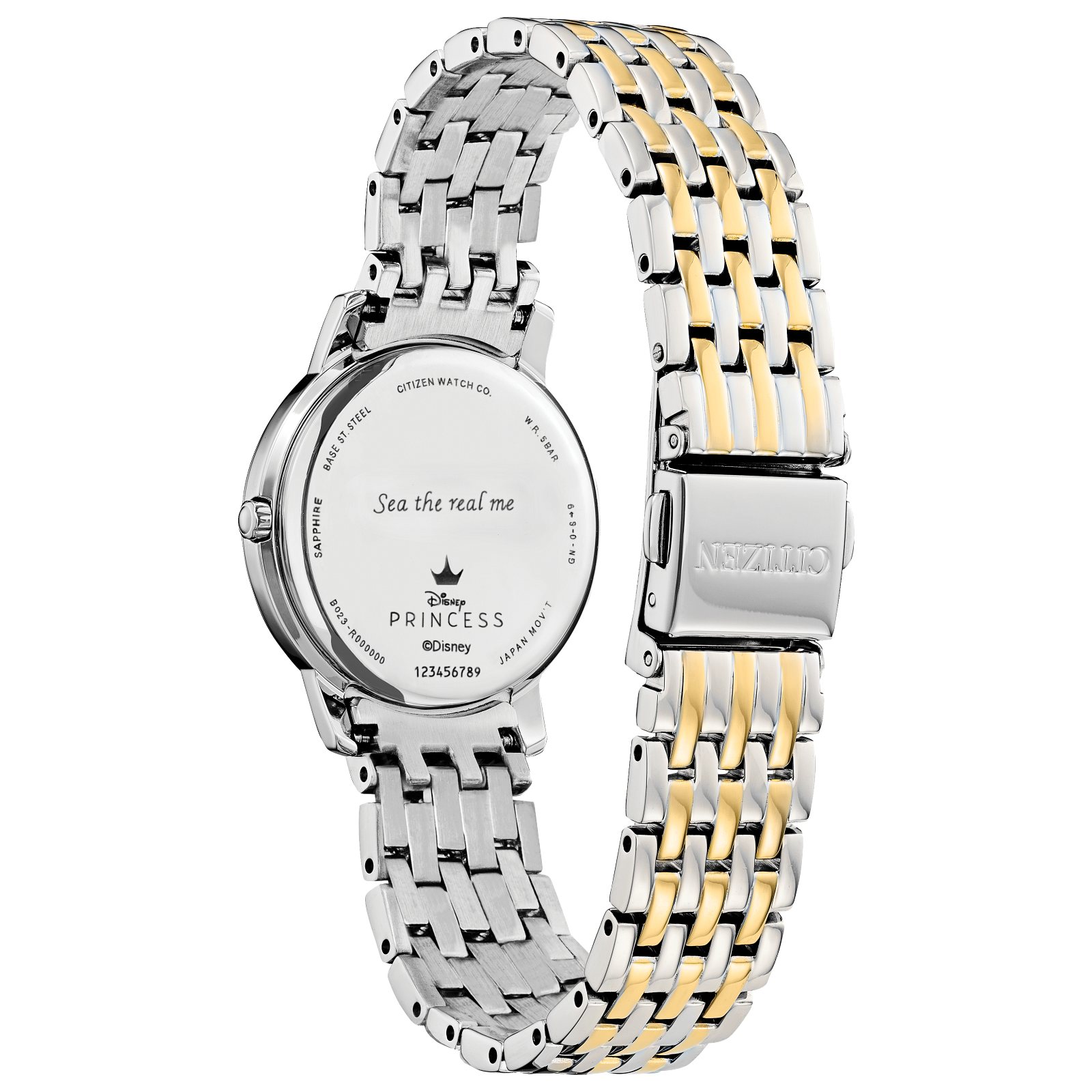 This Citizen watch captures the essence of the Disney Princess who embodies the spirit of forging your own path: Ariel from Disney’s The Little Mermaid. The dark blue dial features the princess herself in a classic silhouette, dreaming of adventures to come. Diamonds round out the dial, designed to add a bit of shimmer to the waves around her. The...