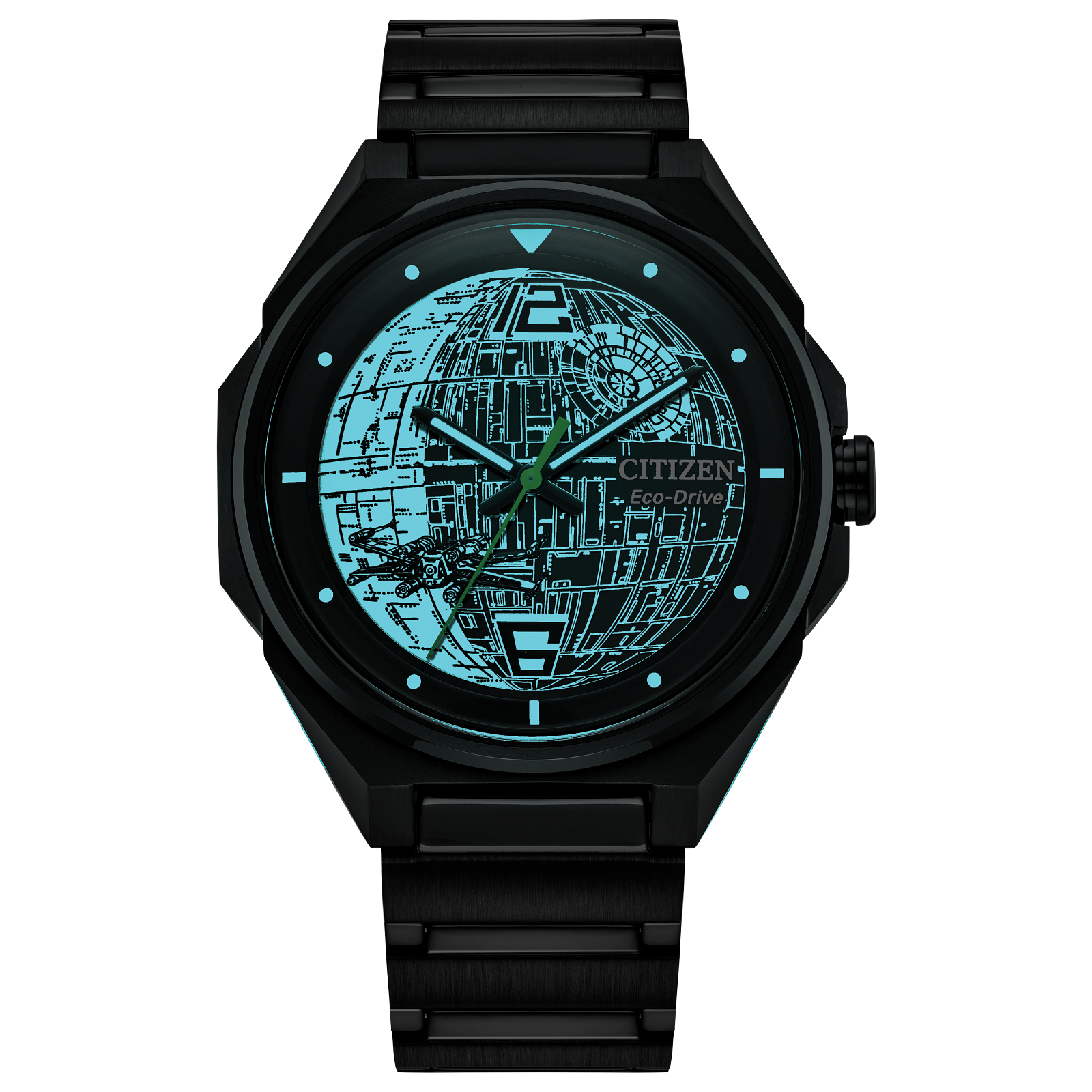 That’s no moon, that’s a space station!” This imposing watch from the men’s classic Star Wars™ | Citizen collection, the Death Star 2, features the intimidating Death Star on a black and white two-tone accented dial. This new timepiece has 3 hands that appear as lightsabers™ accentuating with a glow of destiny. The luminous face highlights the X-wing fighter, and...