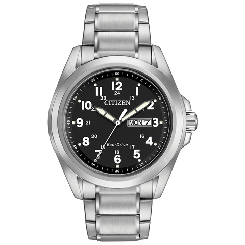 Classic watch styling designed for the man of today. Sporty with clean lines and oversized Arabic numbers, just what we want in an everyday timepiece. Featuring day and date. Featuring our Eco-Drive technology – powered by light, any light. Never needs a battery. Caliber number J800.
