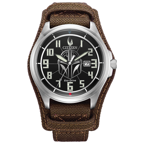 Learn the way of the Mandalore™ where strength and bravery are true codes of honor. Meet the Mandalorian™, the noble bounty hunter in the Star Wars™ galaxy who wears his protective armor with pride. This Citizen and Star Wars collaborative timepiece represents his courageous style in a silver-tone stainless steel case encircled with a brown leather strap with stitching detail....