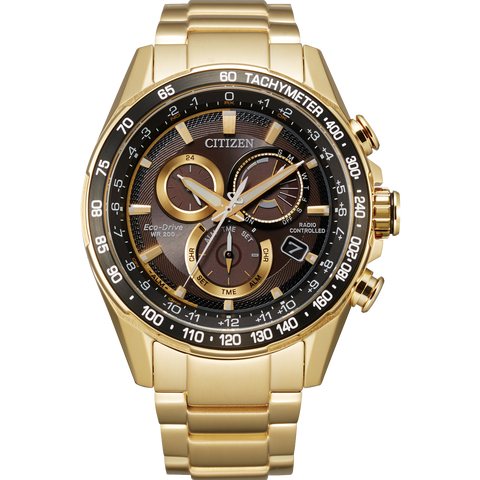 The PCAT from Citizen is an updated take on an iconic design, with refreshed features and design aesthetic, while maintaining the classic dial for this iconic collection. Features include the Tachymeter bezel, a world timer, perpetual calendar, power reserve indicator, chronograph, atomic timekeeping with synchronized time adjustment in 43 cities worldwide and radio control. It has a gold-tone stainless-steel band...
