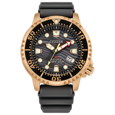 Explore the deepest depths with the latest Promaster Dive in a stylish new color. This must-have diving watch vibrantly features a rose gold-tone stainless steel case, a gray 3-hand dial with date function, and luminous hands and markers. The durable, gray polyurethane strap with buckle closure completes the look for a comfortable fit. Featuring our sustainable Eco-Drive technology powered by...