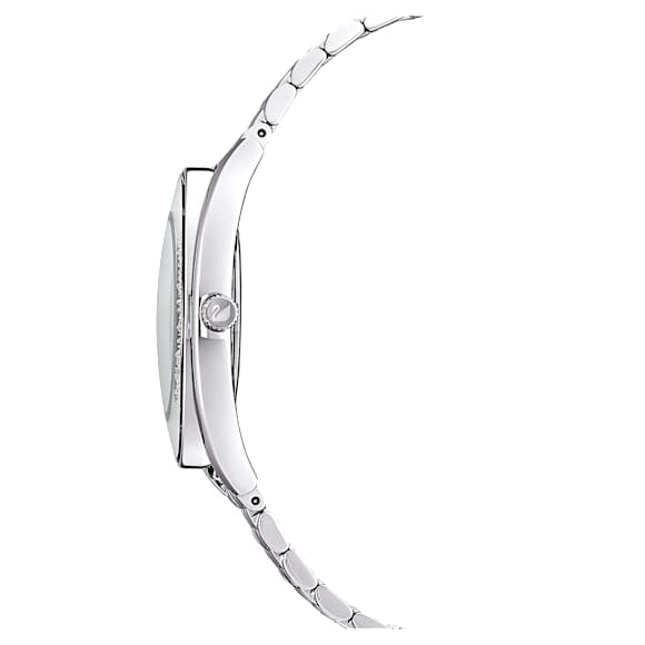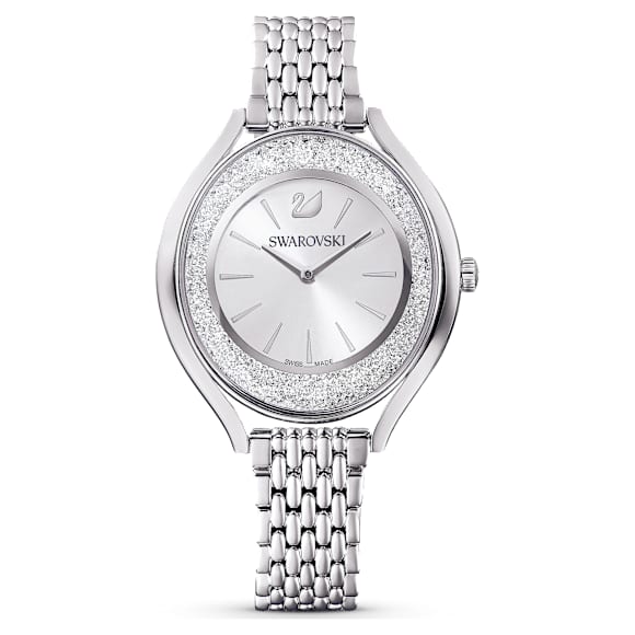 Eminently elegant: This Swarovski watch from our Crystalline Aura Collection artfully combines form and function. More than 1,300 crystals in the stainless steel case create a brilliant sparkling effect. A stainless steel bracelet and a white silver tone dial with the Swarovski swan at 12 o'clock complete the sophisticated design. This Swiss made watch is water resistant up to 50...