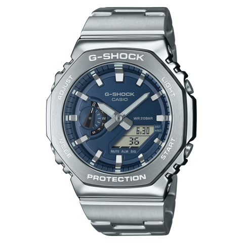 Sophistication clothed in a stainless-steel watch, the GM2110D-2B is an elegant necessity for casual and business attire. A navy-blue watch forged from the popular GA2100 series introduced in 2019, the GM2110D series adds a stainless-steel bezel and band to the slim case and analog-digital functionality and beauty of the 2100. A blue-dial watch with a metallic dial and inset metal...