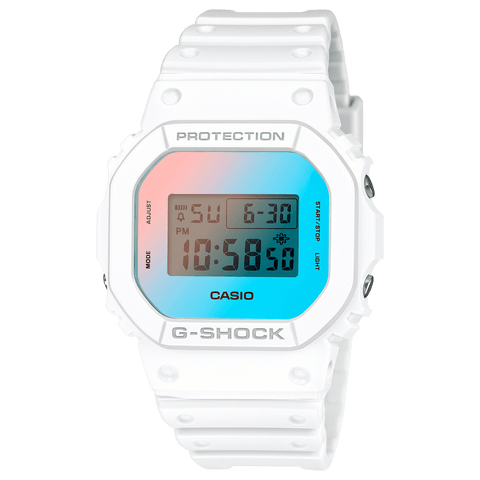 Kick off your flip flops and sit back in your beach chair with the summer-style, white G-SHOCK DW5600TL-7 watch. The popular 5600 series of digital G-SHOCK watches have been through many iterations since they were modeled after the original 1983 G-SHOCK. Its popularity is due, in part, to the innovative styles. The white G-SHOCK DW5600TL-7 has an octagonal bezel and...
