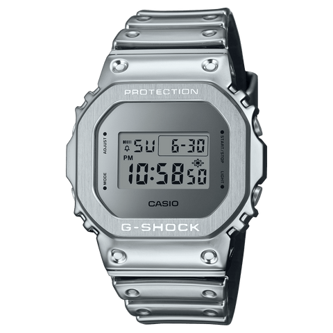 G-STEEL daring meets sophisticated gleam in monochromatic silver color scheme.The monochrome aesthetic pairs a metal bezel colored silver with a newly developed tough silicone band in the same color. The surface of the band is protected with a urethane sheet finished with vapor deposition in silver to achieve a metallic glimmer in a band that feels great against the skin....