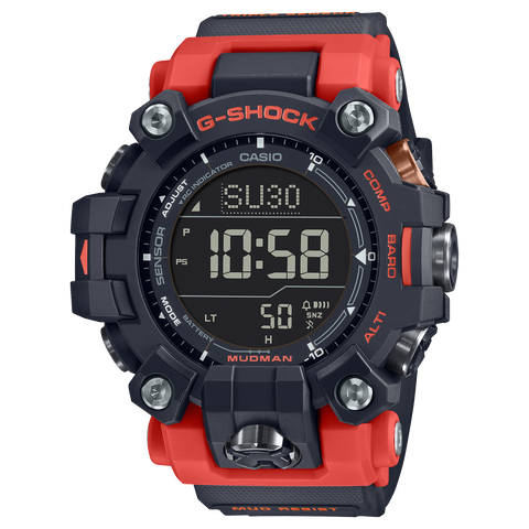 Unleash bold style and unmatched functionality with the black and orange G-SHOCK Master of G GW-9500-1A4. This distinctive color combination symbolizes the fusion of power and elegance. It's an embodiment of the prestigious line of timepieces crafted for those braving the most demanding environments. Known as the MUDMAN for its top-notch mud-resistant construction, this watch stands as a testament to...