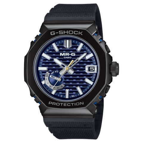 Immerse yourself in the blue serenity of the stunning MRGB2100R, a proud addition to the MR-G line, the pinnacle of the G-SHOCK brand. Indulge your appreciation of luxurious quality with a slim G-SHOCK MR-G crafted with state-of-the-art metals and exquisite traditional Japanese finishes.The dial is inspired by the traditional Japanese art of interlocking woodwork called kigumi. This traditional art is...