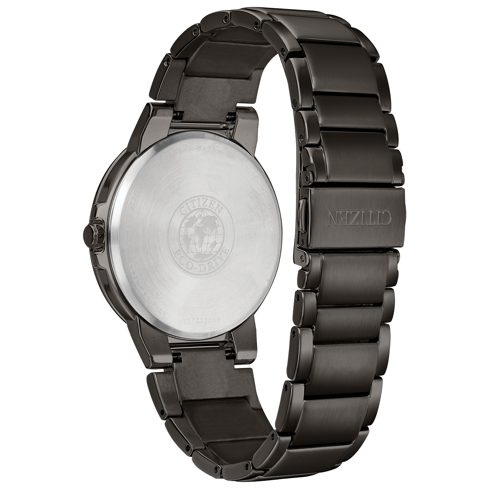 Axiom's refined yet sleek design offers a day-to-night fashion options for the avid trendsetter. A watch with Eco-Drive technology, not just a solar watch but powered by any light, featuring a men's grey stainless steel case and bracelet with a black dial and the intriguing feature of edge-to-edge glass. Featuring our Eco-Drive technology – powered by light, any light. Never...