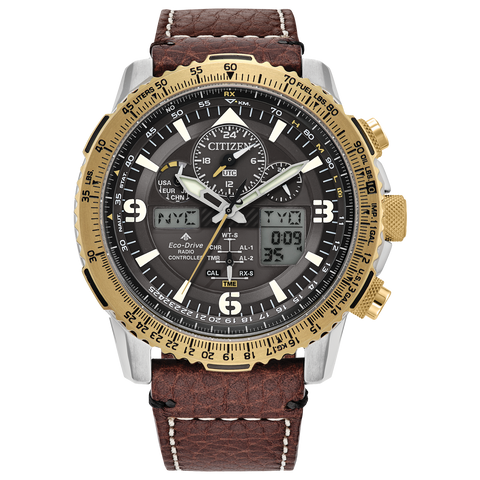 Advanced technology with a deeply iconic look, the latest Promaster Skyhawk A-T reaches a higher altitude in style. Designed with a two-tone stainless steel case and gray dial with luminous hand and encased in sapphire crystal, this exceptional timepiece includes atomic time clock synchronization for superior accuracy, time adjustment available in 43 world cities, 1/100 second chronograph measures up to...
