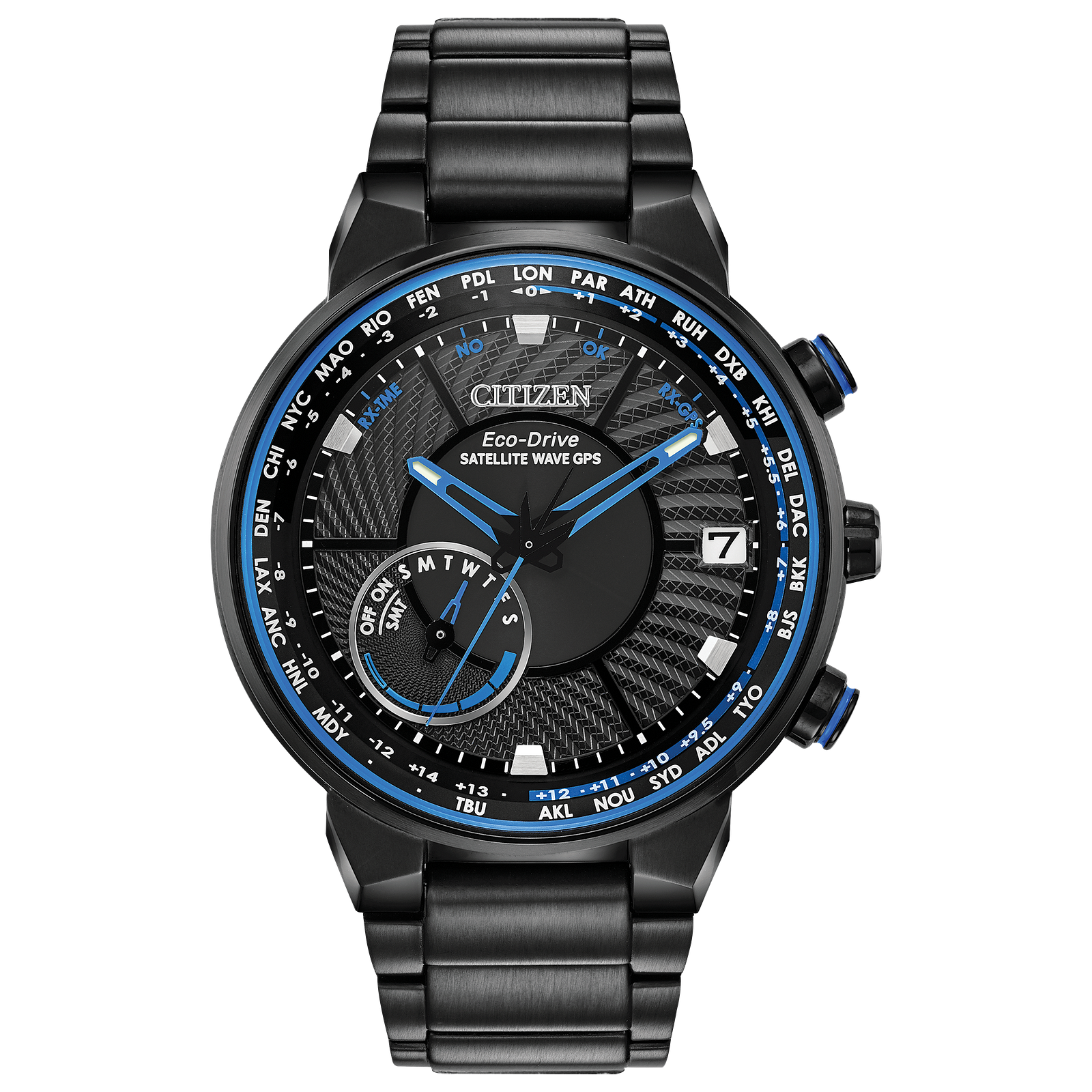 Bolder and brighter. Enhanced technical and architectural design; the new Citizen Satellite Wave GPS Freedom is the leader of the pack with the world's fastest timekeeping signal reception speed from GPS navigation. A sleek black ion-plated stainless steel case and bracelet, black dial and brilliant blue accents featured satellite GPS timekeeping technology with worldwide reception and time adjustment in 40...