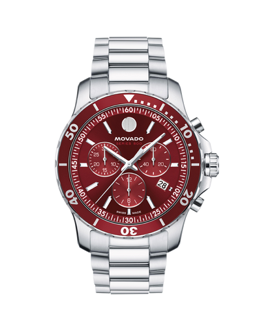 The Series 800 is a modern take on a timeless sport-inspired silhouette. This 42mm chronograph watch features a deep red sunray dial, aluminum bezel, and Swiss Super-LumiNova® accents.