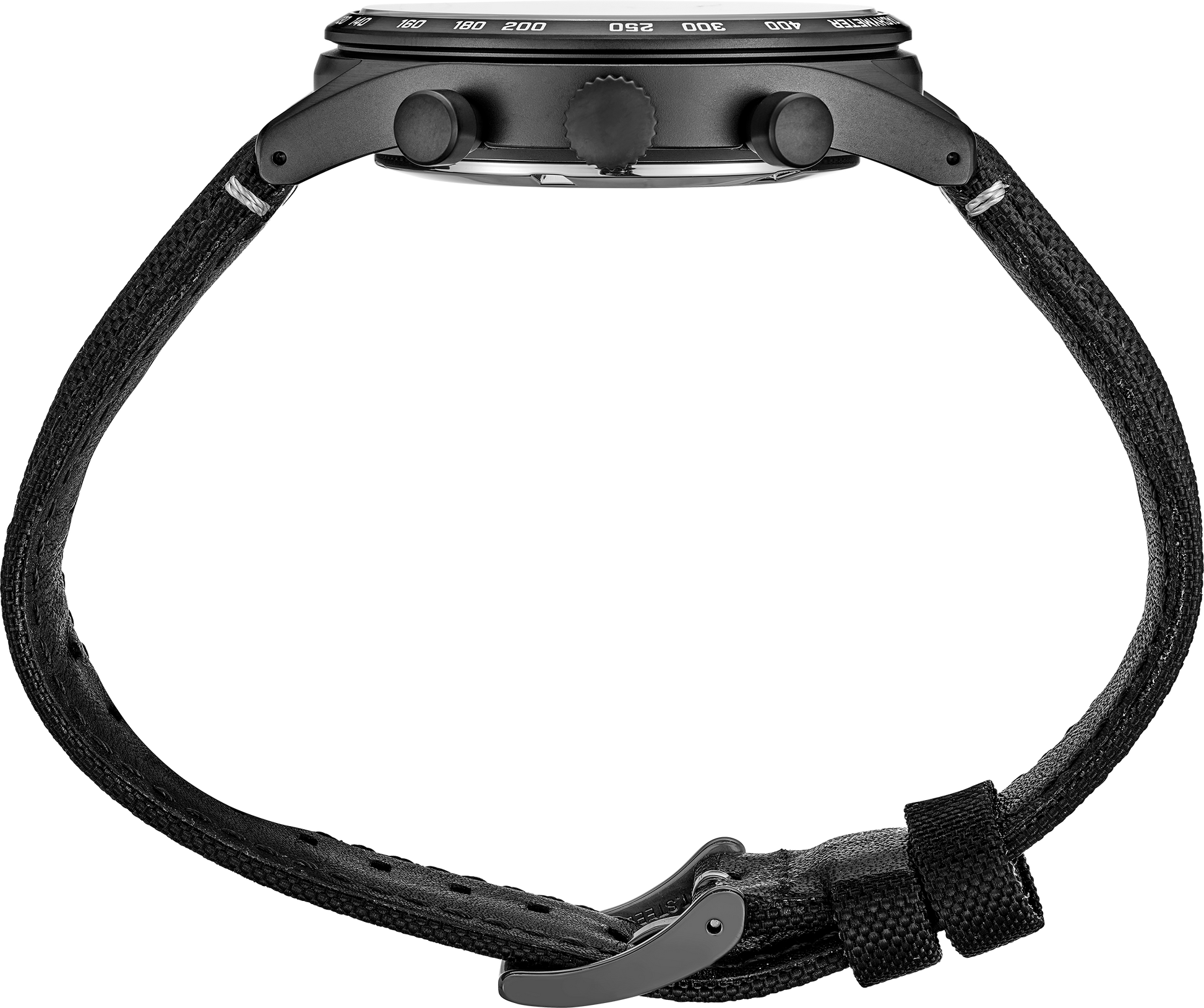 From the Essentials Collection. Designed to evoke the cool thrill of driving by night, this smooth chronograph offers a slim profile for sleek sport or everyday wear. Framed by a black metallic dial ring, the rich black dial adds a streetwear edge with its y-shaped shoe-sole pressed pattern. With three subdials, including a 24-hour indicator and a date calendar, the...
