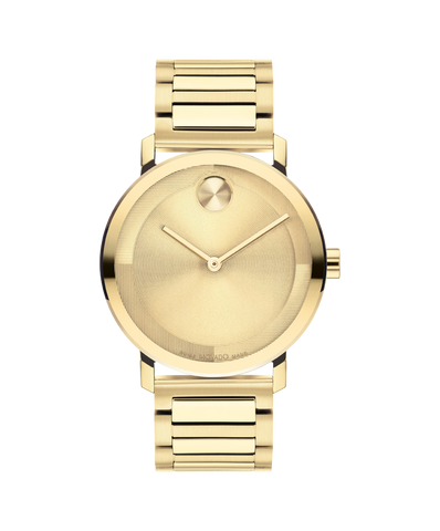 The evolution of modern design with a sharp look and elevated feel. Crafted from pale yellow goldtone ion-plated stainless steel, this sleek timepiece features a statement-making 40mm case that houses a captivating micro-textured goldtone dial with a glossy lacquer overlay, slim hands, and our iconic dot motif at 12 o’clock.