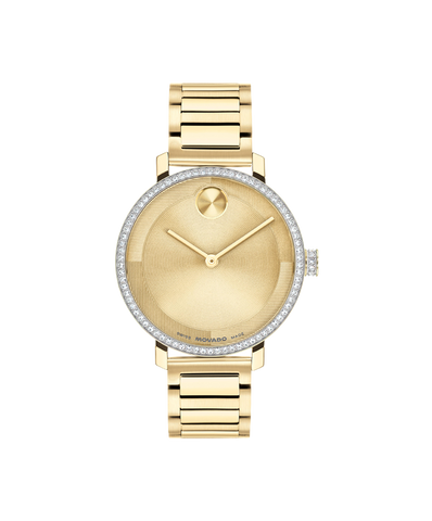 The Bold Evolution 2.0 merges Bold design with refined details, featuring an elevated, modern case and a dimensional micro-textured dial. This 34mm two-hand watch is accented by a crystal-set bezel and crown surrounding a yellow gold-plated dial, slim yellow gold-tone hands, and our signature dot at 12 o'clock.