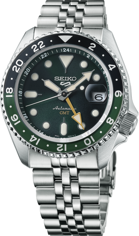 Seiko 5 Sports SKX Sports Style GMT Series. Adding new richness to classic sport/dress design, this dynamic watch offers a new variation on the popular “SKX” style. Equipped with automatic technology that you control with every movement, this versatile watch is powered by a 24-jewel movement that beats at a frequency of 21,600 vibrations per hour, with a power reserve...