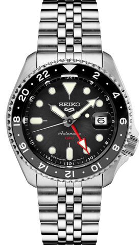 Seiko 5 Sports SKX Sports Style GMT Series. The first Seiko 5 Sports watch with a GMT function, the dynamic SKX design provides on-the-go durability and style. Equipped with automatic technology that you control with every movement, this versatile watch is powered by a 24-jewel movement that beats at a frequency of 21,600 vibrations per hour, with a power reserve...