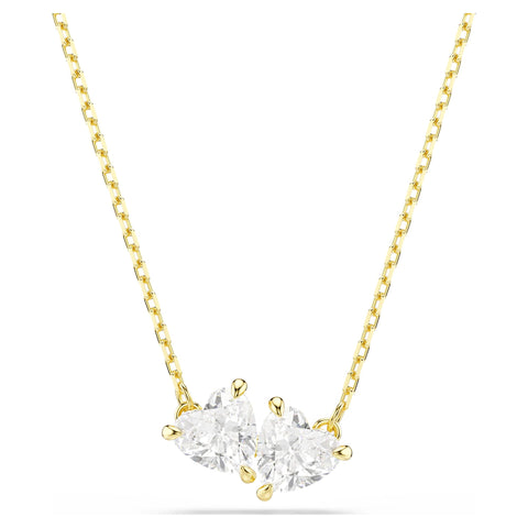 This Swarovski necklace from the Mesmera family delivers classic design with a modern twist. Featuring beautiful Swarovski Zirconia shaped like twin hearts, the design is complemented by gold-tone plating and the understated elegance of its chain. This charming necklace is the perfect gift of romance for someone you love.