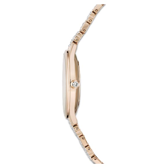 Illuminate your look in this exquisite watch, engineered in champagne gold-tone PVD-coated stainless steel. Sleek and eye-catching, the soft, metal bracelet is trimmed with over 150 clear crystals. The guilloché dial is decorated with modernist, crystal index markers to add a delicate touch of luxurious style to the design. Made in Switzerland, it is water resistant to 50m. Perfect for...